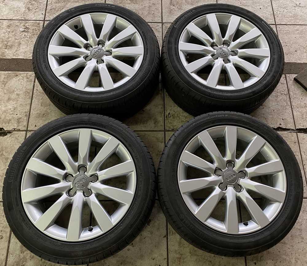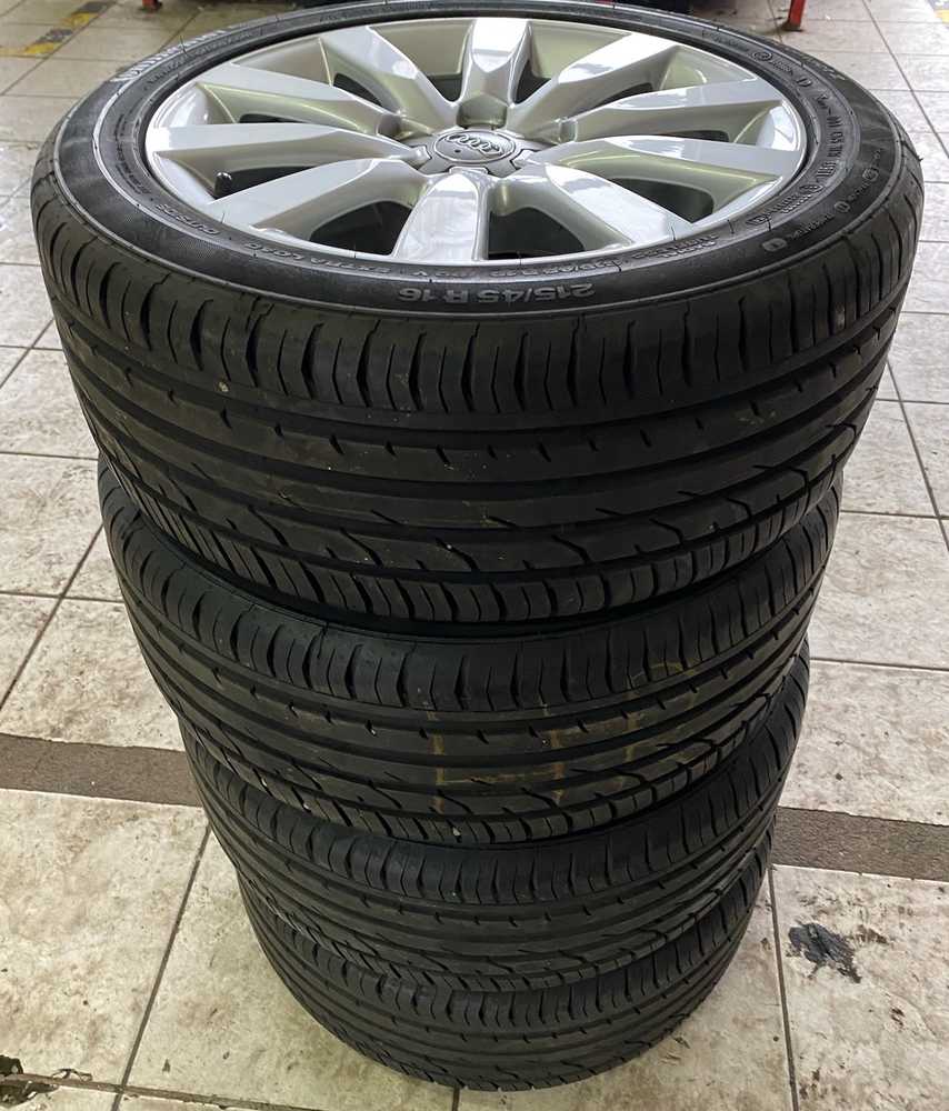 Alu kolo originál AUDI 7x16" ET34, 5x100x57 a Continental ContiPremiumContact 2 215/45 R16 90V XL AO 95%
