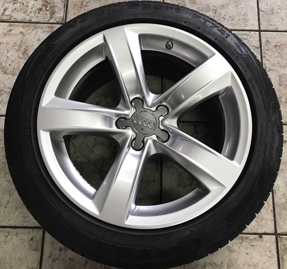 Alu kolo originál AUDI 8.5x18" ET29 5x112x66.5 a Petlas Velox Sport PT741 245/45 R18 100W 80%