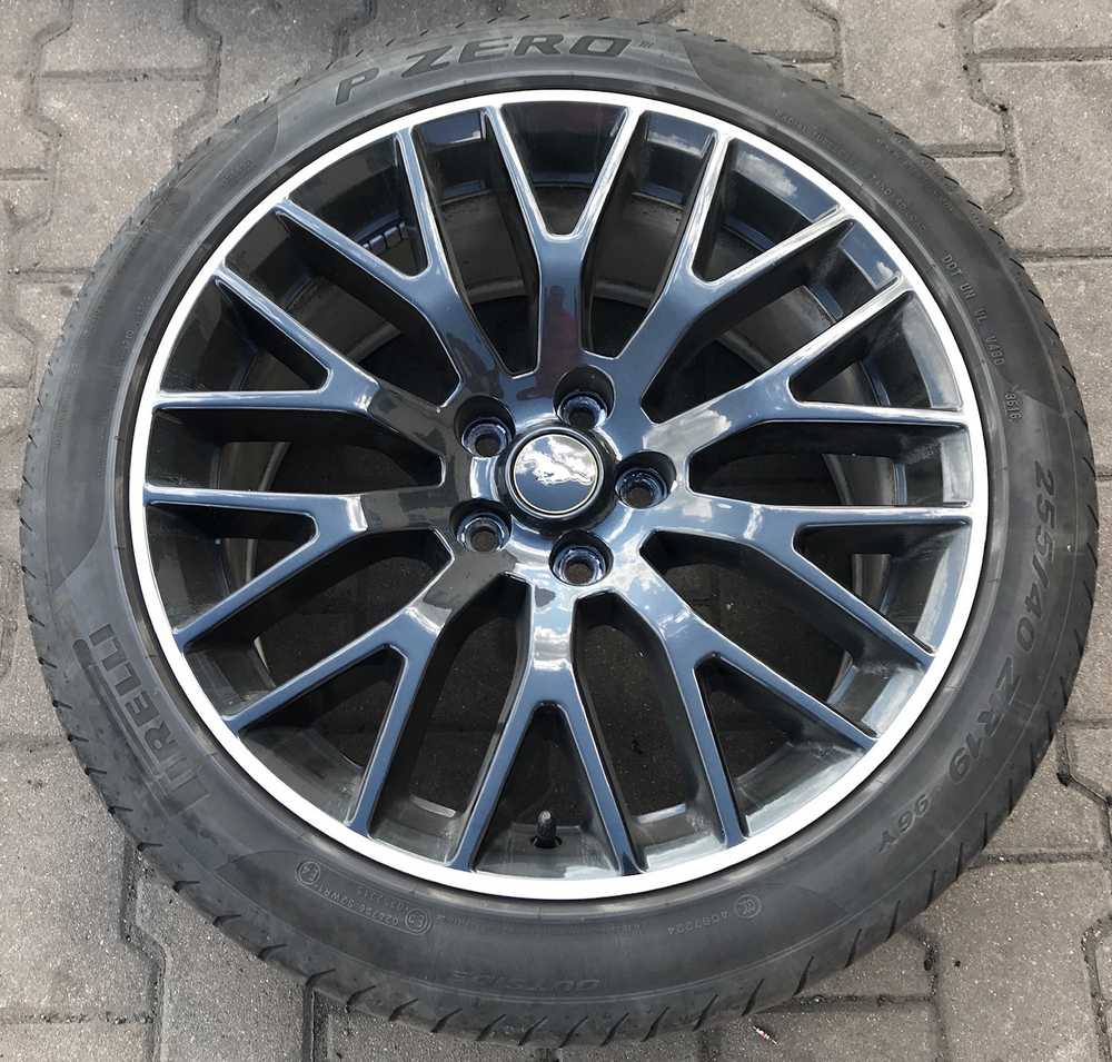 Alu kolo originál FORD MUSTANG 5x114.3x70.3 Přední 9x19“ ET45 a Pirelli PZero 255/40 R19 96Y 30%, Zadní 9.5x19“ ET52.5 a Goodyear Eagle F1 Asymmetric 2 275/40 R19 101Y 90% + čidla tlaku TPMS