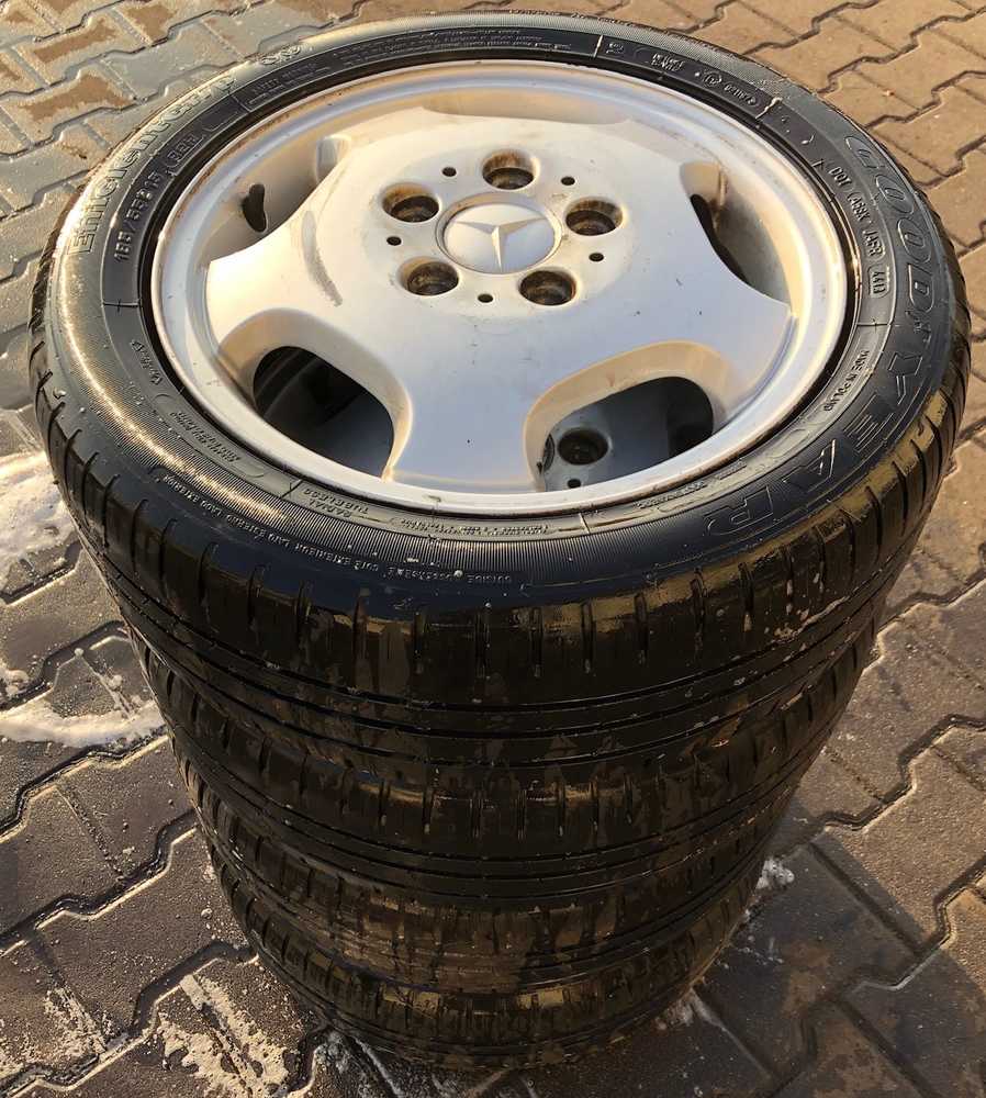 Alu kolo originál MERCEDES 5.5x15“ ET54, 5x112x66.5 a Goodyear EfficientGrip 185/55 R15 82H 80%