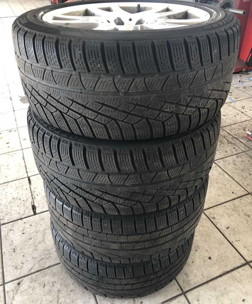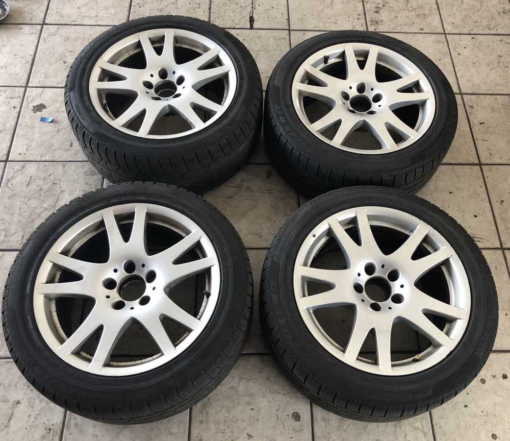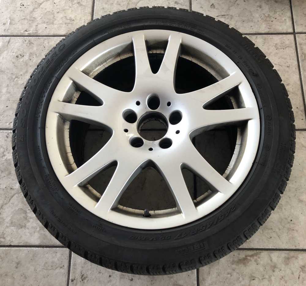 Alu kolo originál MERCEDES 5x112x66.5 PŘEDNÍ 8.5x17" ET28 a Pirelli Winter 240 SottoZero 245/45 R17 99V XL MO 20%, ZADNÍ 8.5x17" ET18 a Pirelli Winter 210 SottoZero II 245/45 R17 99H XL MO 20%