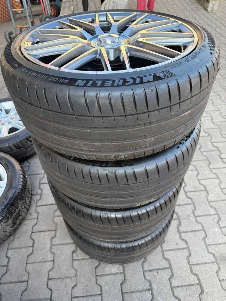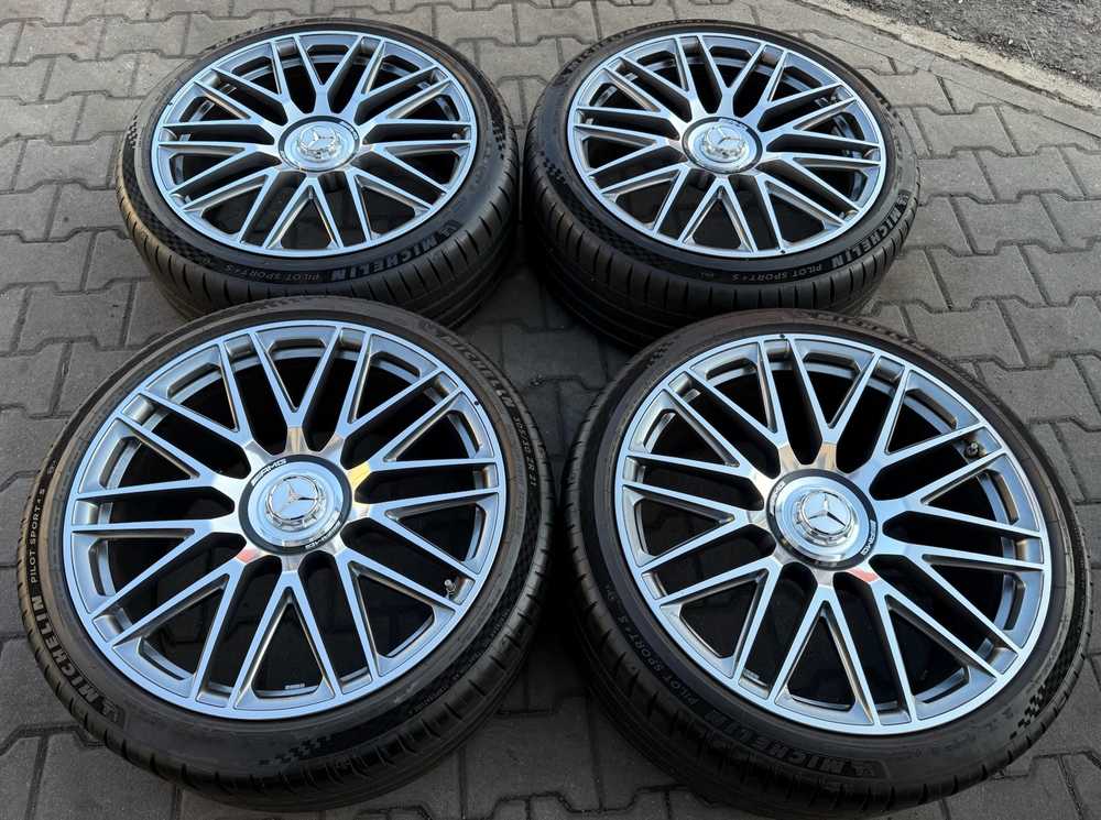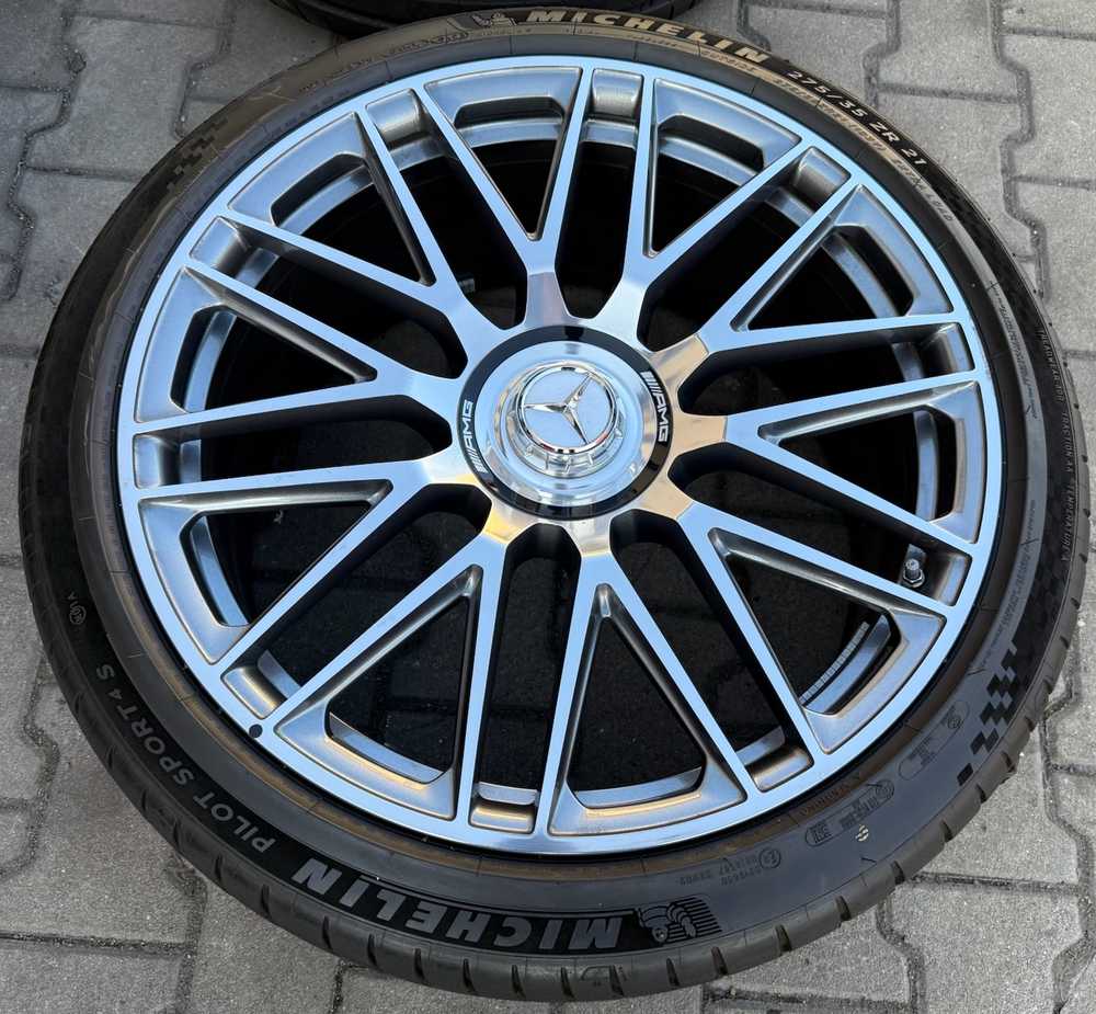 Alu kolo originál MERCEDES AMG 5x112x66.5, Přední 9.5x21" ET56 a Michelin Pilot Sport 4S 275/35 R21 103Y XL MO 90%, Zadní 11x21" ET67 a Michelin Pilot Sport 4S 305/30 R21 104Y XL MO 80% + čidla tlaku TPMS