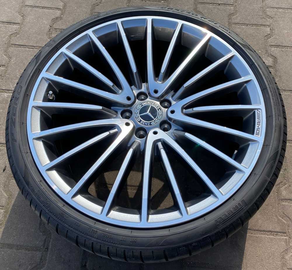 Alu kolo originál MERCEDES AMG 5x112x66.5, Přední 9x21" ET34 a Pirelli P Zero 275/35 R21 98Y XL MO-S 20%, Zadní 10x21" ET48 a Pirelli P Zero 285/30 R21 100Y XL MO-S 90% + čidla tlaku TPMS
