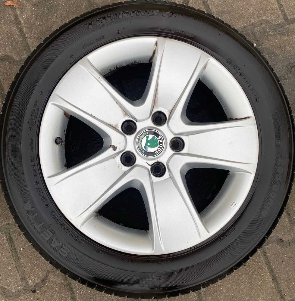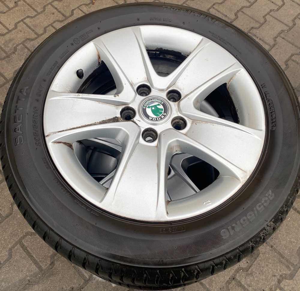 Alu kolo originál ŠKODA 6.5x16" ET50, 5x112x57 a Saetta Touring 2 205/55 R16 94V XL 60%
