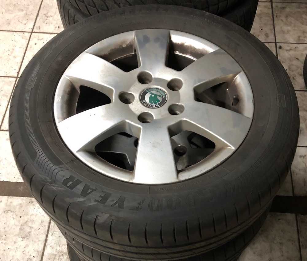 Alu kolo originál ŠKODA 6x15“ ET47, 5x112x57 a Goodyear EfficientGrip Performance 195/65 R15 91H 60%