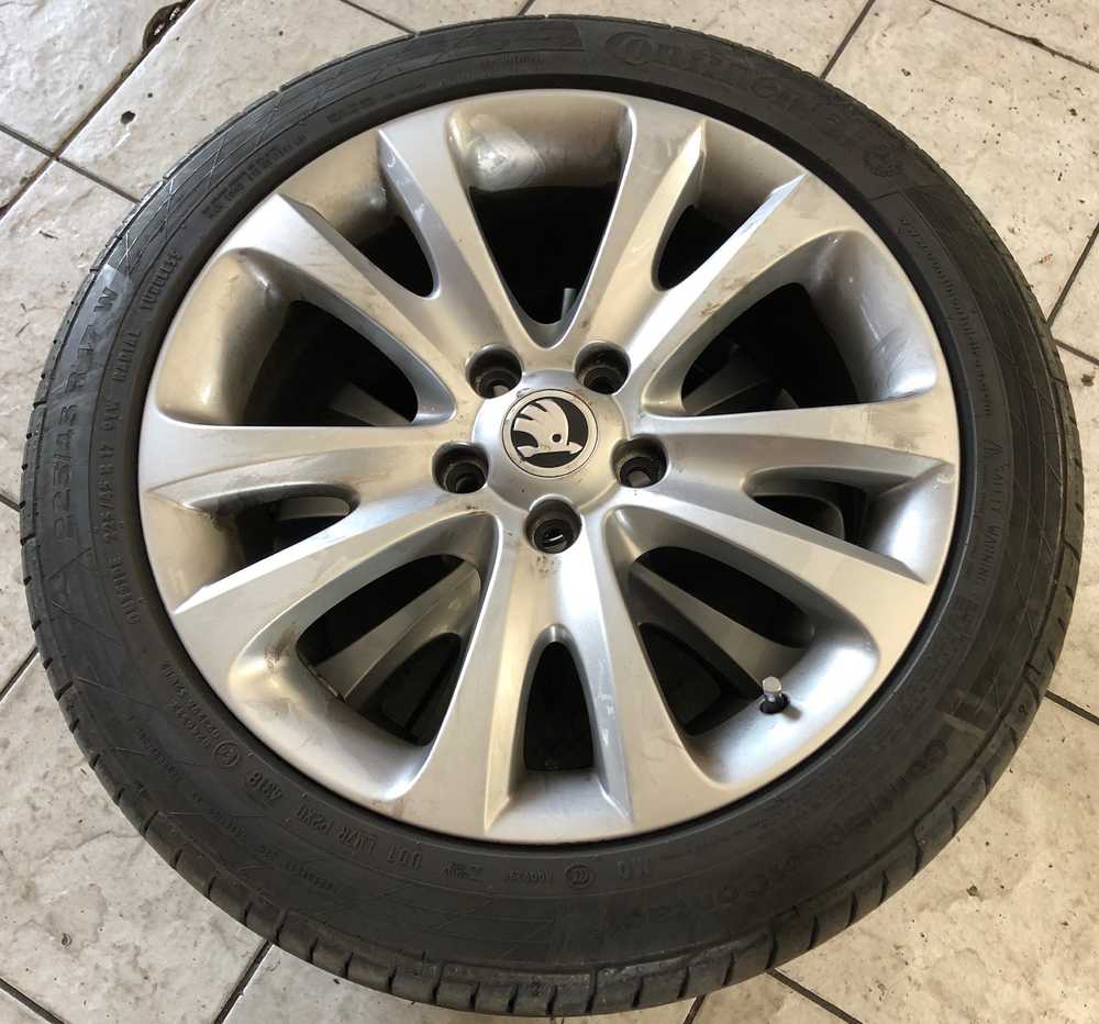 Alu kolo originál ŠKODA 7.5x17“ ET49, 5x112x57 a Continental SportContact 5 225/45 R17 91W 90% a Pirelli Cinturato P7 225/45 R17 91W 50%