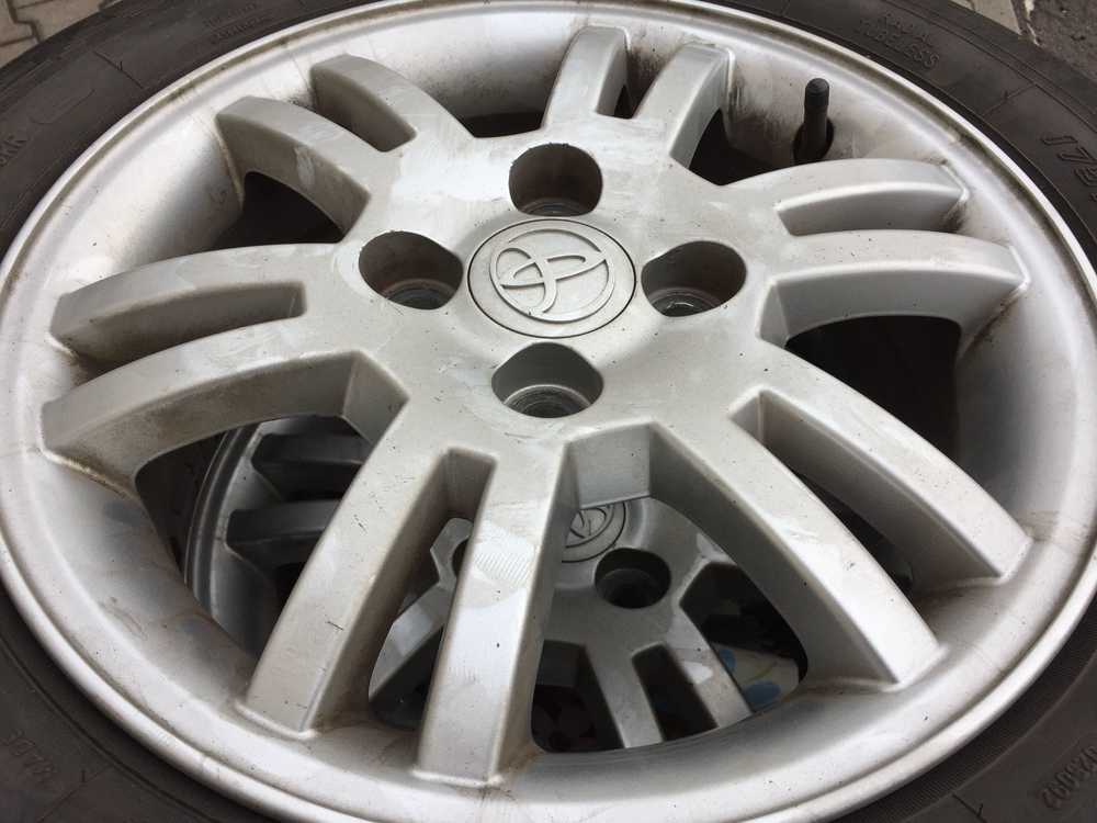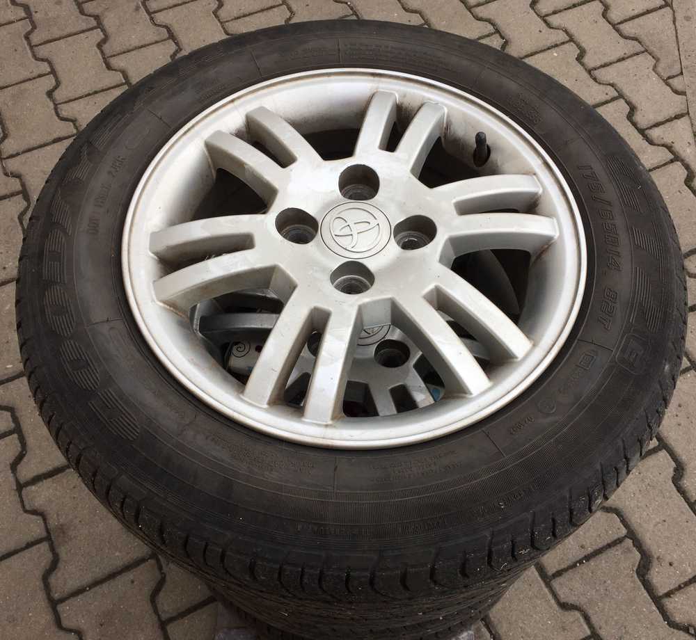 Alu kolo originál TOYOTA 5.5x14" ET45 4x100x54 a Goodyear GT2 175/65 R14 82T 70% + Matky