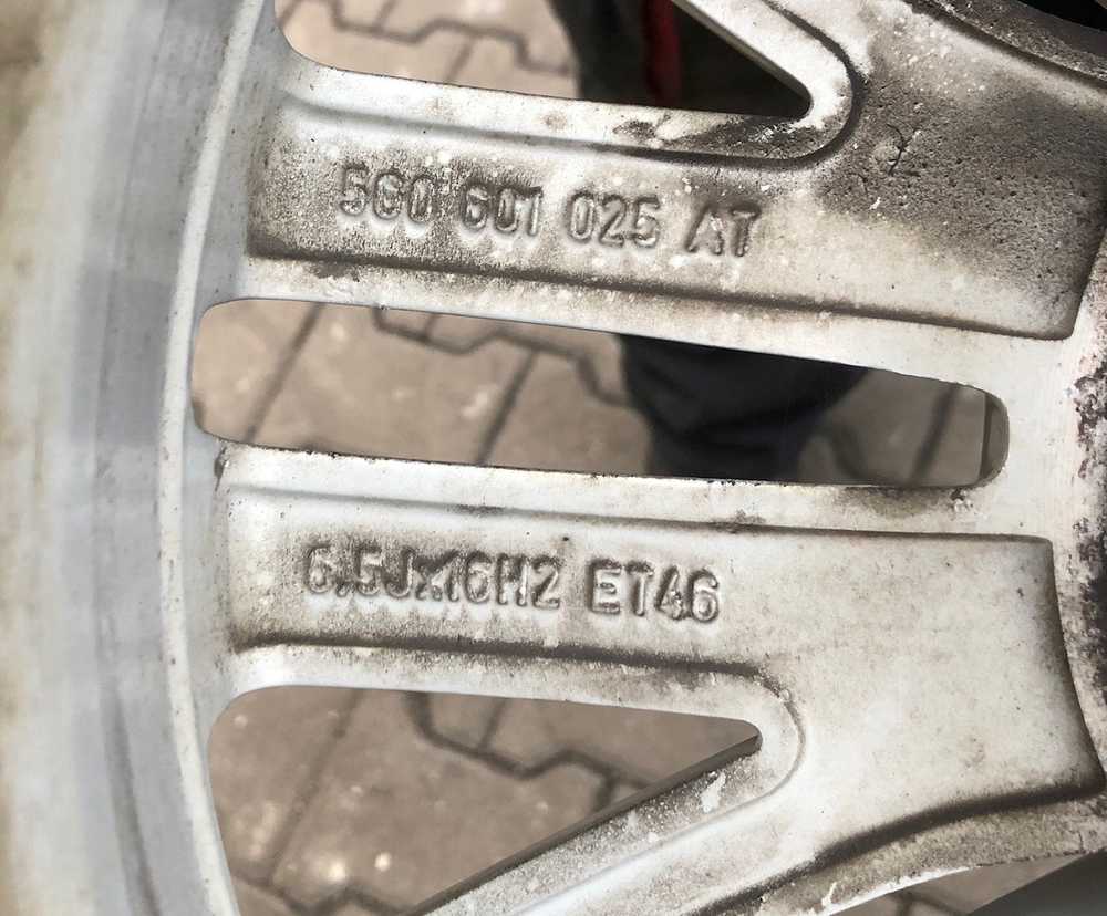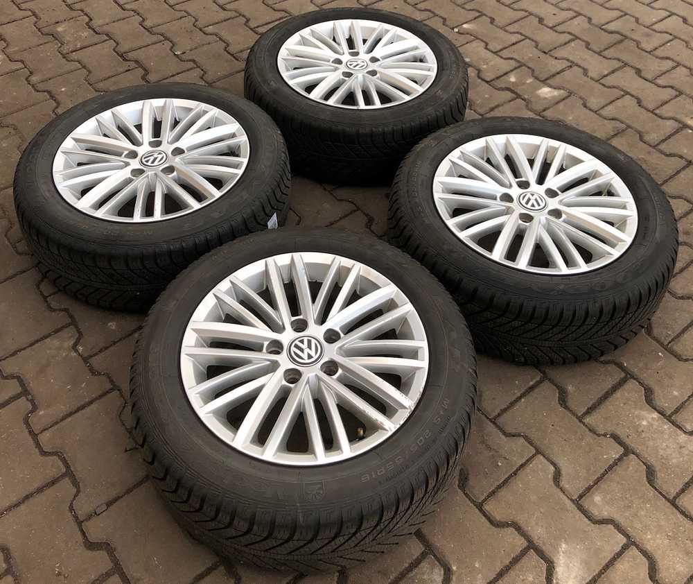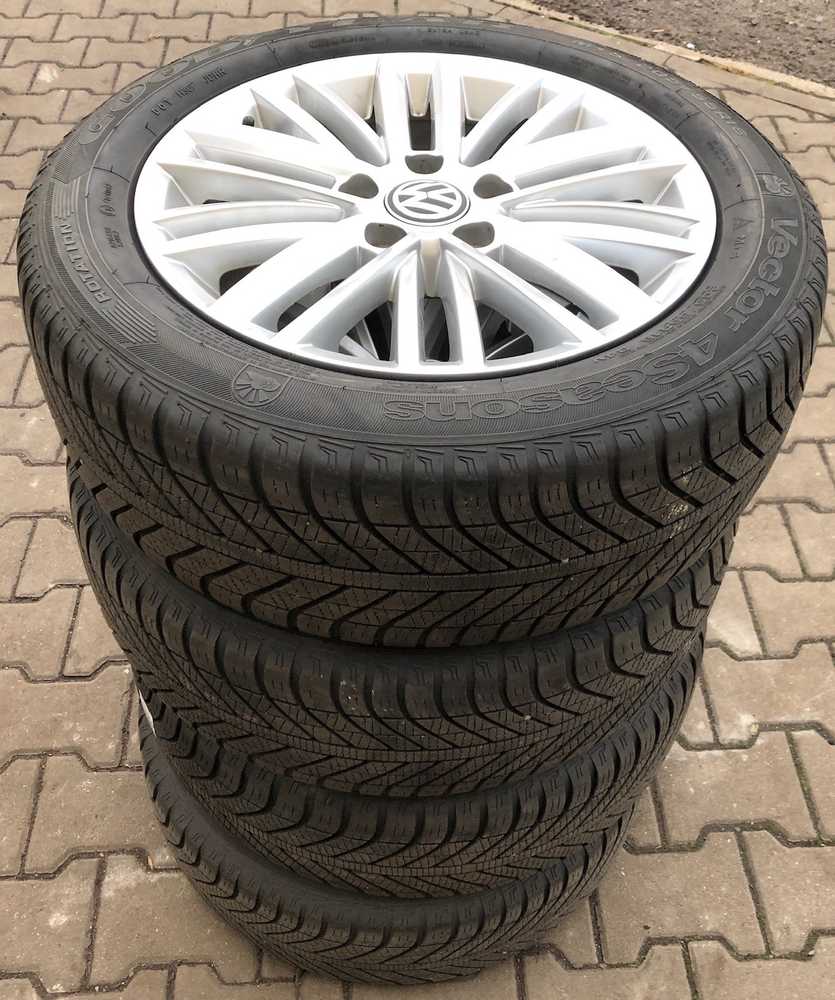 Alu kolo originál VW 6.5x16" ET46 5x112x57 a Goodyear Vector 4Seasons 205/55 R16 94V AO 40%
