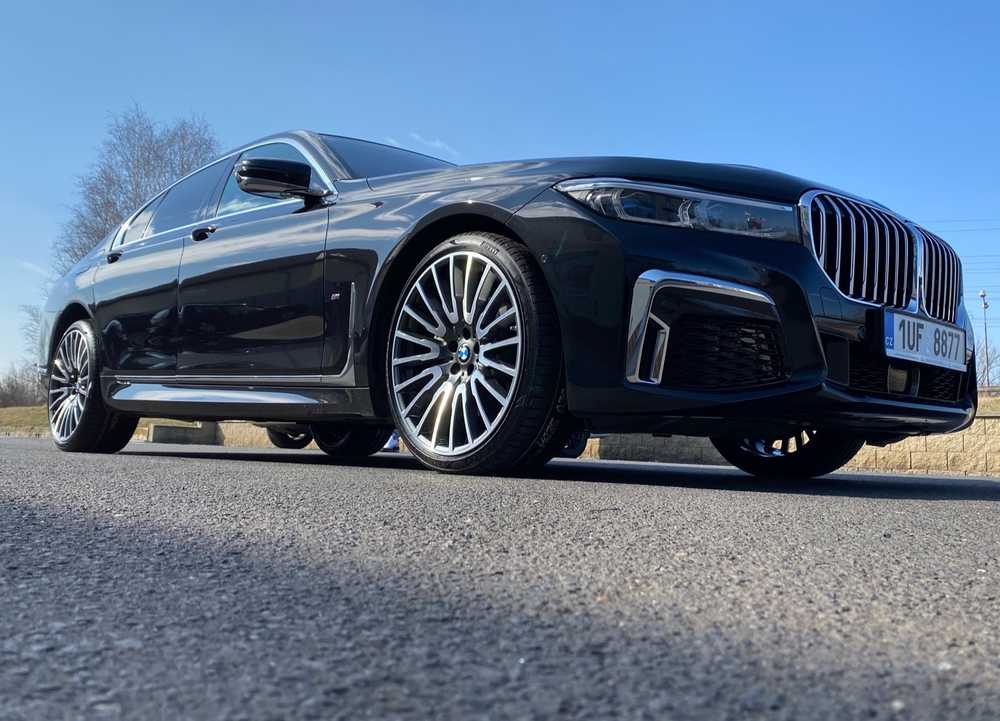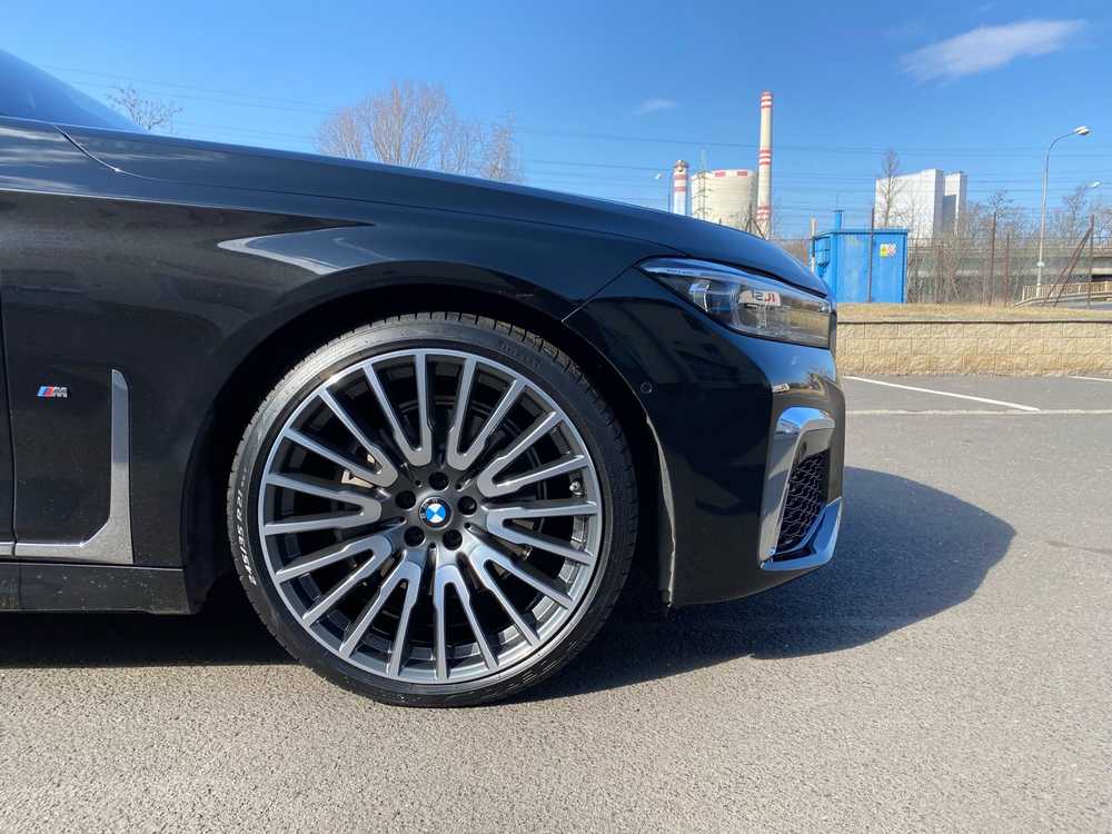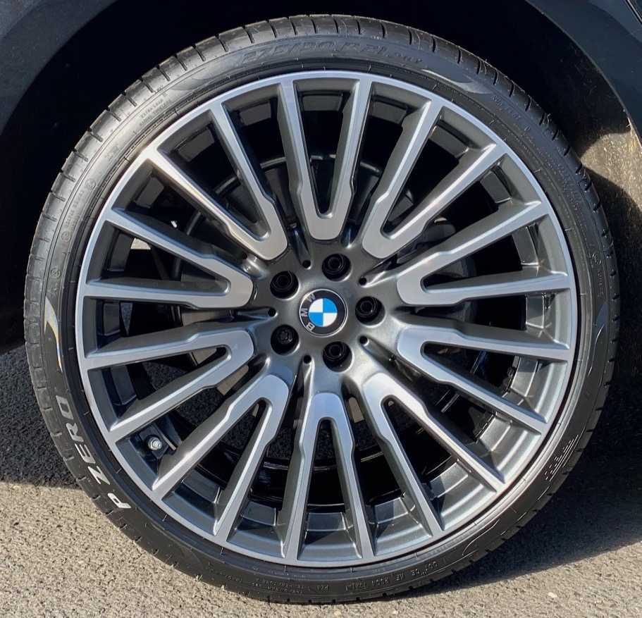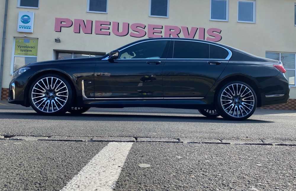 BMW 7 jsme obuli na Alu kolo originál BMW 5x112x66.5 PŘEDNÍ 8.5x21“ ET25 a Pirelli PZero 245/35 R21 96Y RFT *, ZADNÍ 10x21“ ET41 a Pirelli PZero 275/30 R21 98Y RFT * + čidla tlaku TPMS