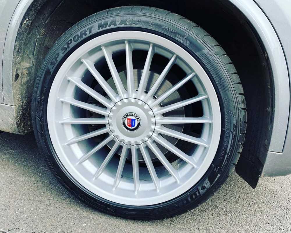 BMW X5 jsme obuli na Alu kolo originál ALPINA Přední 5x120x74 10x21" ET40 a Dunlop SP Sport Maxx 285/35 R21 105W XL RFT *, Zadní 5x120x74 11.5x21" ET38 a Dunlop SP Sport Maxx 325/30 R21 108Y XL RFT *