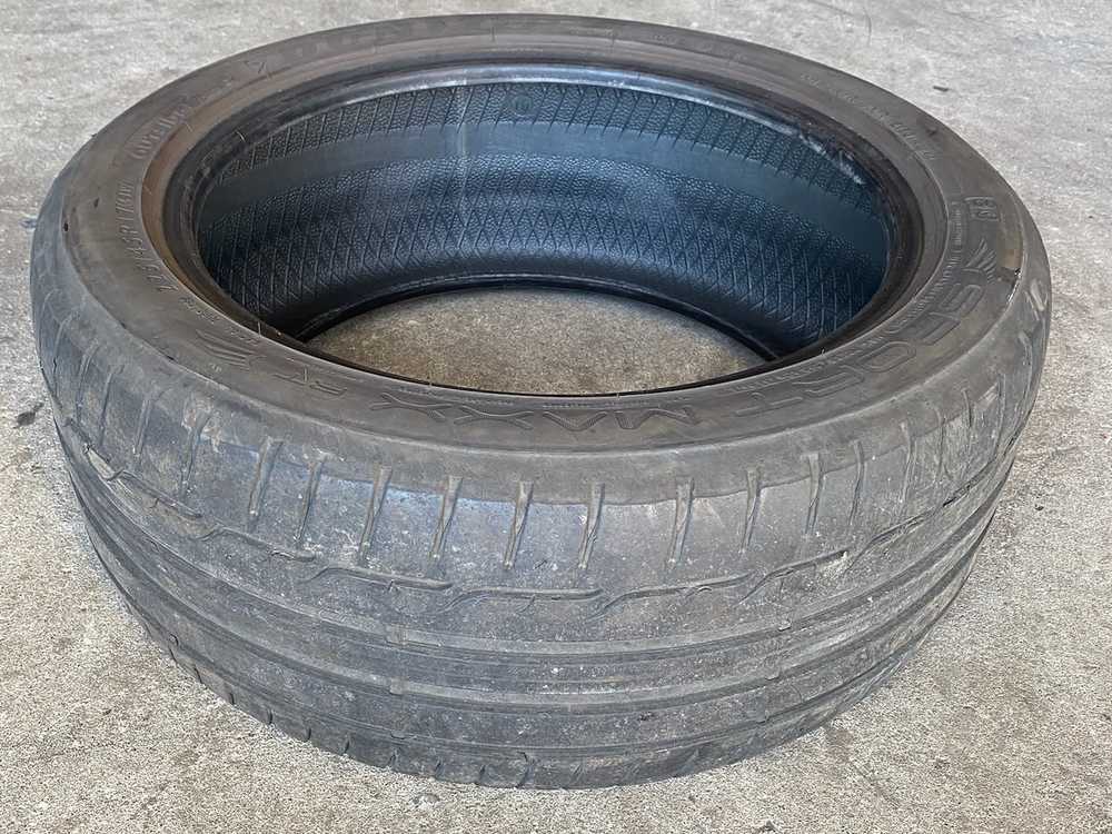 Lehce odřená bočnice - poze povrchová, bez vlivu na funkčnost - viz foto. Pneu vyzkoušena a je bez závady.