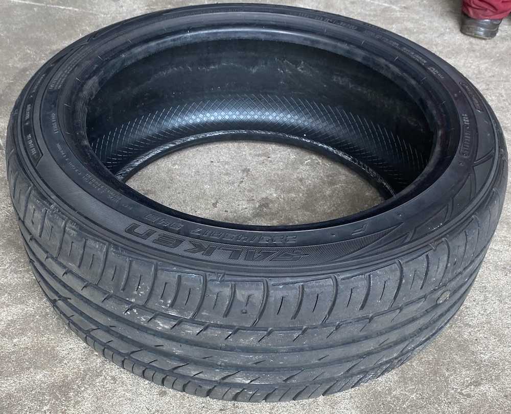 Lehce odřená bočnice - poze povrchová, bez vlivu na funkčnost - viz foto. Pneu vyzkoušena a je bez závady.