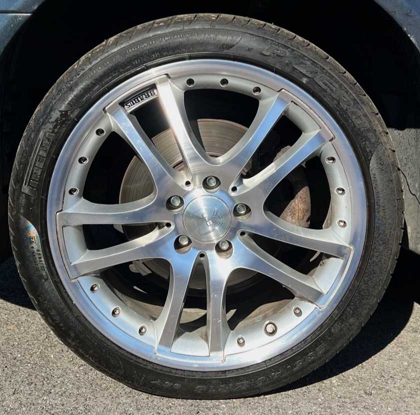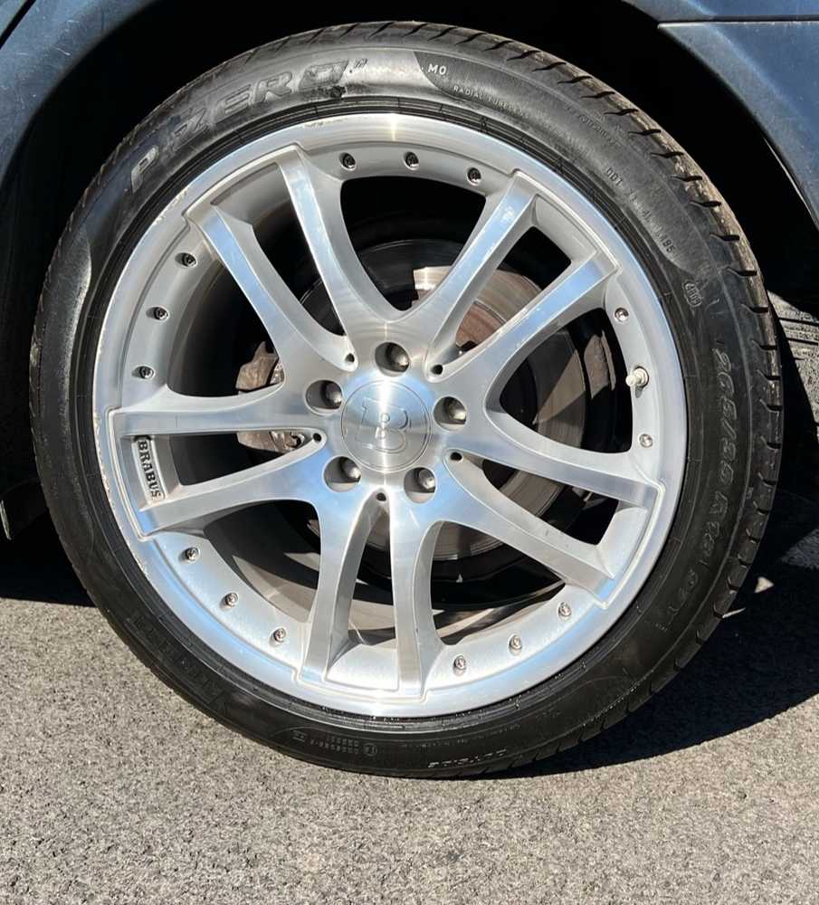 MERCEDES E-Class jsme obuli na Alu kolo originál BRABUS 5x112x66.5 PŘEDNÍ 8.5x18" ET50 a Pirelli PZero 235/40 R18 95Y XL MO, ZADNÍ 9.5x18" ET50 a Pirelli PZero 265/35 R18 97Y XL MO