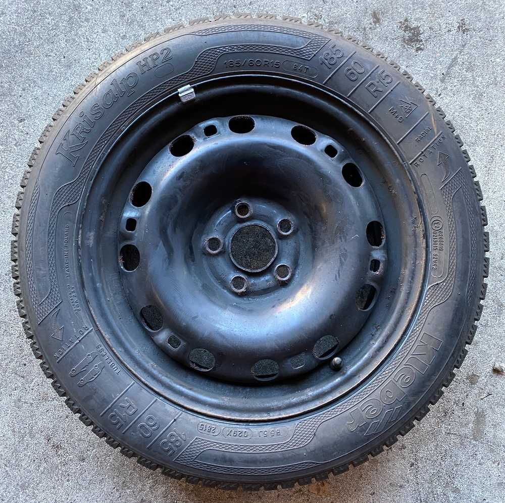 Plechový disk KFZ 7760 6Jx15 5x100x57 ET38 a Firestone Winterhawk 3 185/60 R15 84T 80%