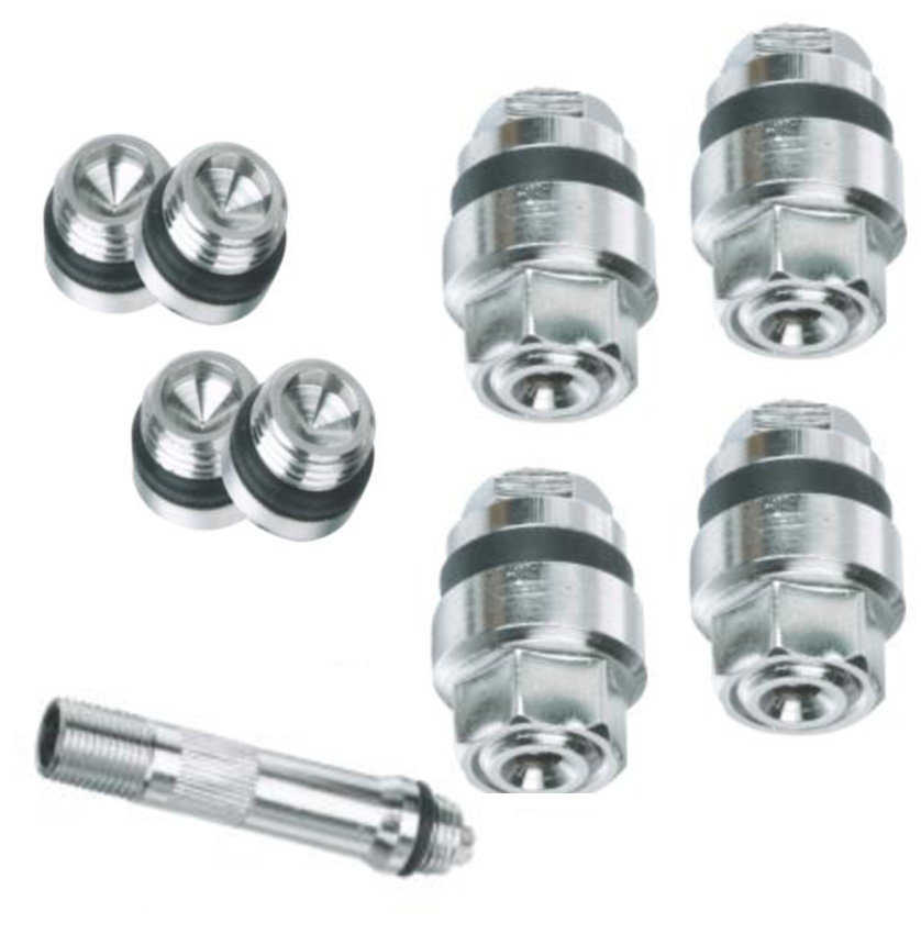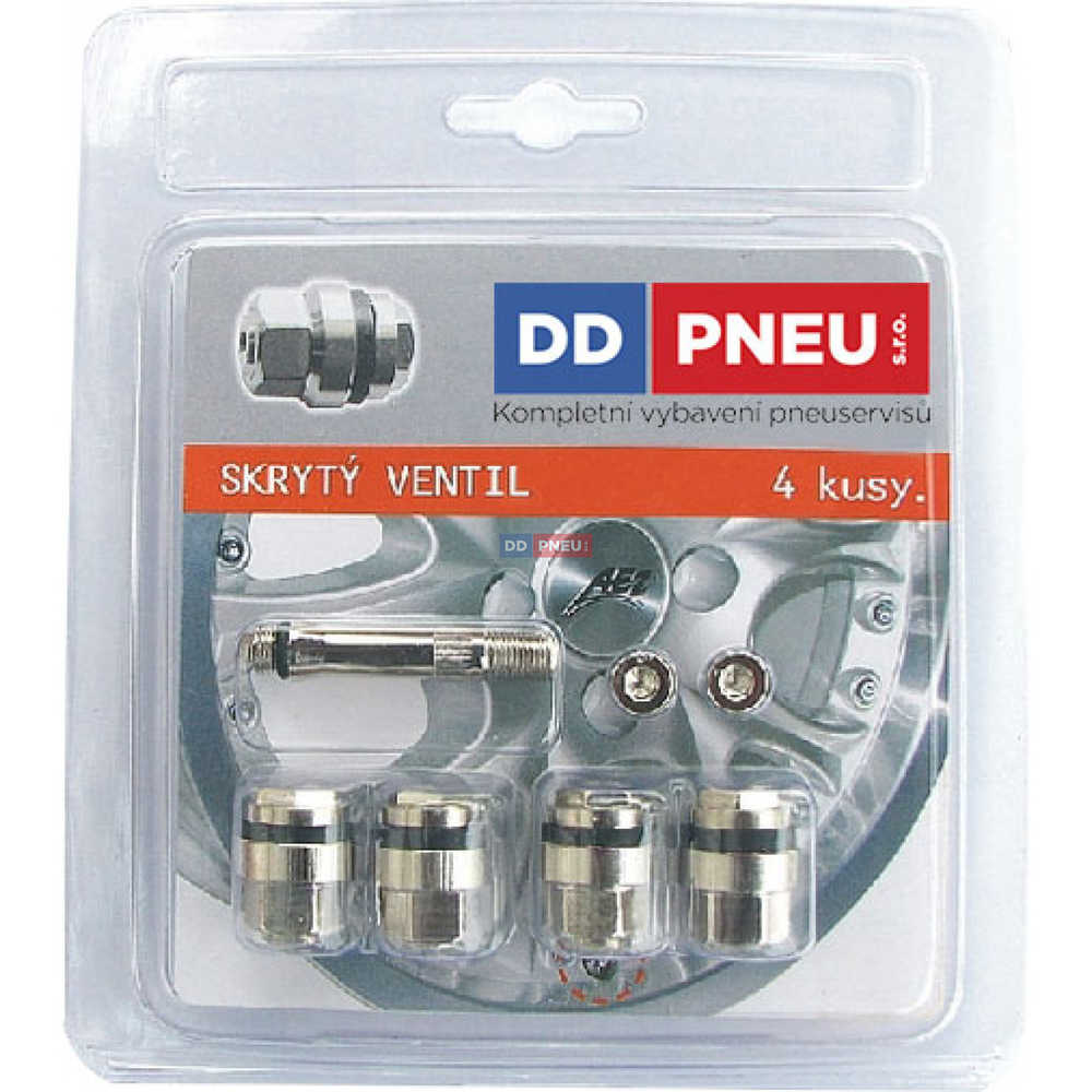 Ventil pro stříbrné disky. Skrytý ventil pro osobní auta s hliníkovými disky ulehčuje vyvážení kola a působí esteticky. Pro standardní díru v disku 11,5 mm. V sadě 4 ks plus adaptér. Díky speciální konstrukci je ventil chráněný před ztrátou těsnění, znečištěním, vytrhnutím a vypustěním.